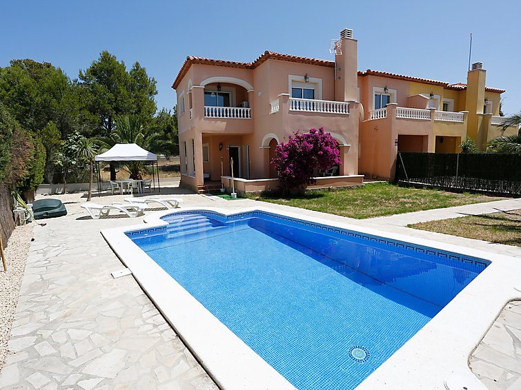 6-huoneen huvila, 170 m2, 2 tasossa. Mukavasti sisustettu: olo/ruokailuhuone, avotakka, satelliitti TV, radio, CD ja DVD. Uloskäynti terassille. 2 huonetta, kaikissa huoneissa 2 vuodetta, ilmastointi ja ilmalämmitys. 1 huone, 1 kapea parisänky, ilmastointi ja ilmalämmitys. Keittiö (4 keittolevyä, uuni, astianpesukone, mikroaaltouuni, pakastin, kahvinkeitin). Kylpy/bidet/WC, suihku/WC. Yläkerrassa: 1 huone, 1 kapea parisänky, suihku/WC, ilmastointi ja ilmalämmitys. 1 huone, 1 kapea parisänky, ilmastointi ja ilmalämmitys. Olohuone avoin. Kylpy/suihku/WC. Terassi 40 m2. Lepotuoleja (10). Kaunis näkymä uima-altaalle. Käytettävissä: pesukone…. Lue lisää »