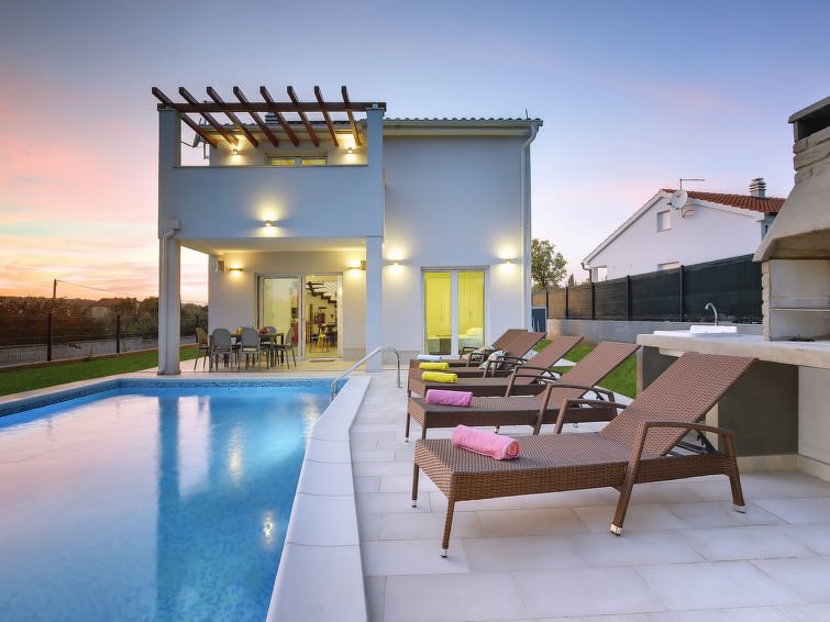 4-huoneen talo, 110 m2, 2 tasossa. Olo/ruokailuhuone, 1 vuodesohva (120 cm, pituus 190 cm), satelliitti TV (litteänäyttö), ilmastointi. Uloskäynti terassille. 1 huone, 1 kapea parisänky (160 cm, pituus 200 cm), ilmastointi. Uloskäynti uima-altaalle. Avoin keittiö (uuni, astianpesukone, 4 keraaminen keittotaso, pakastin, kahvinkeitin). Suihku/WC. Yläkerrassa: sisääntulo, ilmastointi. 1 huone, 1 kapea parisänky (160 cm, pituus 200 cm), suihku/WC ja ilmastointi. Uloskäynti terassille. 1 huone, 1 kapea parisänky (160 cm, pituus 200 cm), ilmastointi. Kylpy/bidet/WC. Ilmalämmitys. Terassi 12 m2, katettu terassi 12 m2. Terassikalusteita, lepotuoleja. Näkymä uima-altaalle. Käytettävissä: tallelokero, hiustenkuivaaja. Internet ( Langaton LAN [WLAN] , ilmainen)…. Lue lisää »