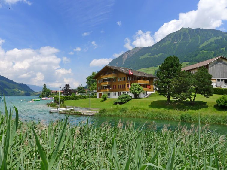”Wohnung Rot”, 3-huoneen huoneisto 1. kerroksessa. Viihtyisästi sisustettu: olo/ruokailuhuone, kaapeli TV (litteänäyttö), radio. Uloskäynti parvekkeelle. 1 kahden hengen huone. Uloskäynti parvekkeelle. 1 huone, 1 x 2 kerrossänky, 1 komerosänky. Avoin keittiö (uuni, astianpesukone, 4 keraaminen keittotaso, raclettegrilli fonduesetti (juusto)). Kylpy/WC. 2 parveketta. Kaunis näkymä järvelle, vuorille ja maaseudulle. Käytettävissä: syöttötuoli, lastensänky. Internet ( Langaton LAN [WLAN] , ilmainen). Huomioitavaa: savuton huoneisto…. Lue lisää »