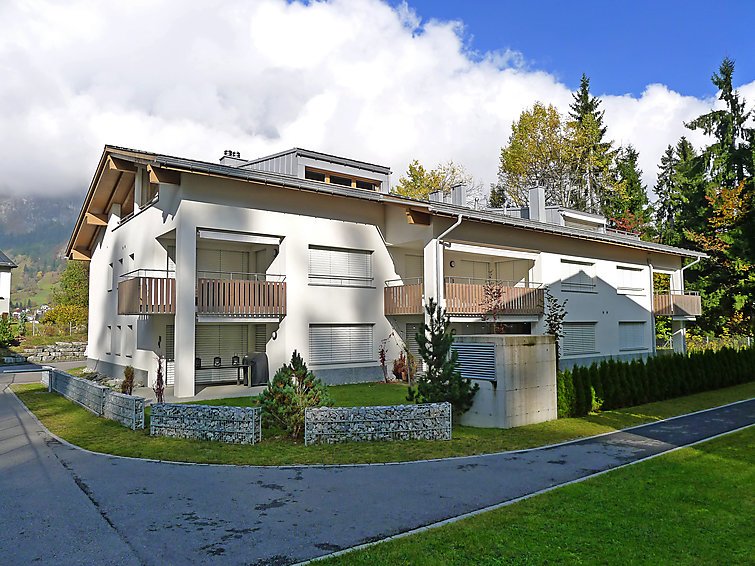 4-huoneen huoneisto, 114 m2, 1. kerroksessa. Mukavasti ja uudenaikaisesti sisustettu: olo/ruokailuhuone, takkakamiina ja kaapeli TV (litteänäyttö). Uloskäynti parvekkeelle. 1 kahden hengen huone, kylpy/suihku/WC. 1 kahden hengen huone. 1 huone, 2 x 2 kerrossänky. Avoin keittiö (uuni, astianpesukone, 4 keraaminen keittotaso, mikroaaltouuni, grilli), pieni baari. Suihku/WC, kylpy/suihku/WC. Lattialämmitys. Parveke 12 m2. Parvekekalusteita. Kaunis näkymä vuorille ja paikkakunnalle. Käytettävissä: lastensänky. Internet (  Langaton LAN [WLAN]    , ilmainen). Autotalli n:o 23 talon vieressä. Huomioitavaa: savuton huoneisto. 1 pieni lemmikki/koira sallittu…. Lue lisää »